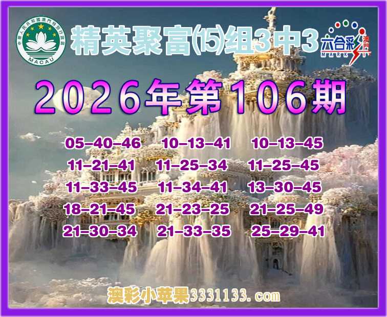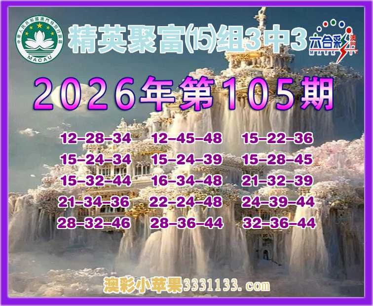 主题: 107期:澳彩小苹果【精英聚富🏆⒂组3中3】㊥独家发表售卖