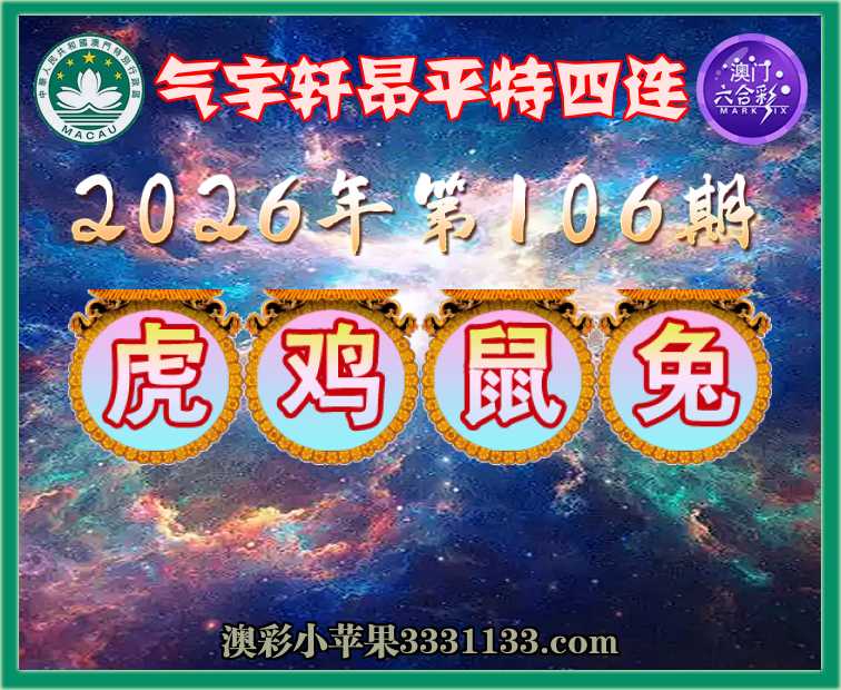 106期:〖气宇轩昂〗 平特四连【虎鸡鼠兔】开:虎05,鸡22,鼠31,兔40准上榜高手