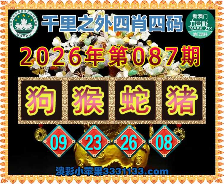 087期:《千里之外》 四肖四码【狗猴猪】【09.23.26.08】开:蛇26准上榜高手