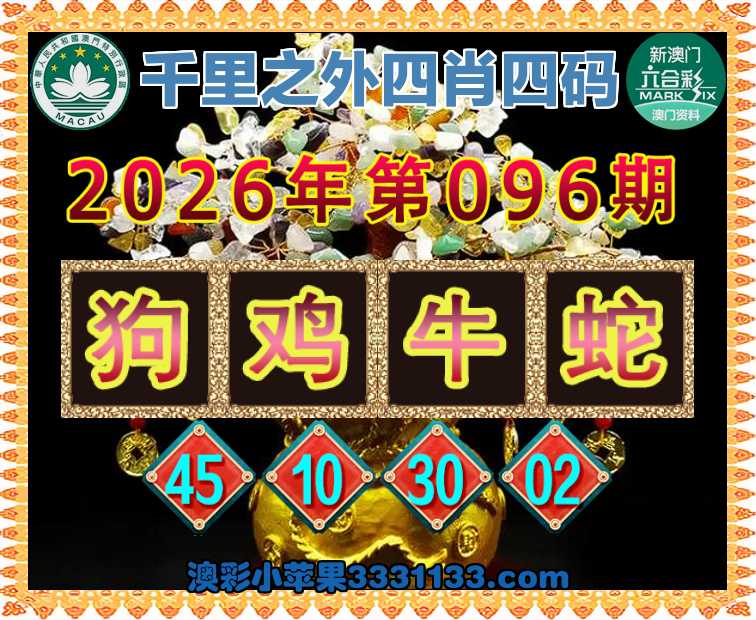 096期:《千里之外》 四肖四码【狗鸡牛蛇】【45.10.30.02】开:鼠43