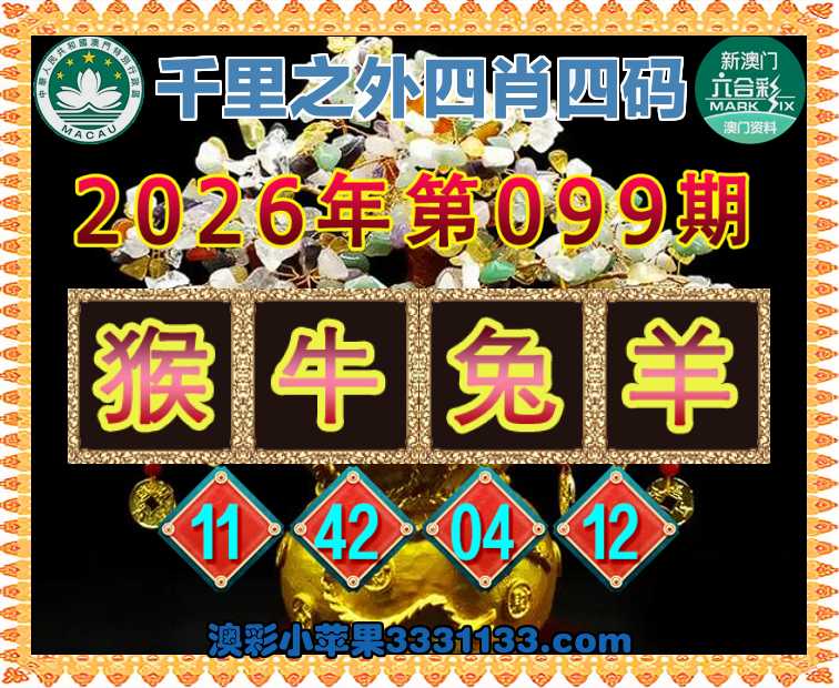 099期:《千里之外》 四肖四码【猴牛兔】【11.42.04.12】开:羊12准上榜高手