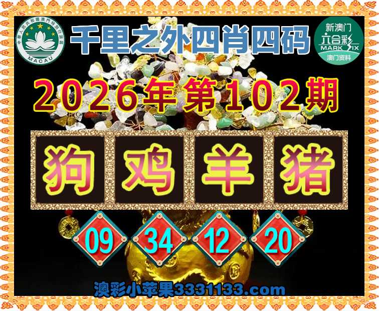 102期:《千里之外》 四肖四码【狗鸡羊】【09.34.12.20】开:猪20准上榜高手
