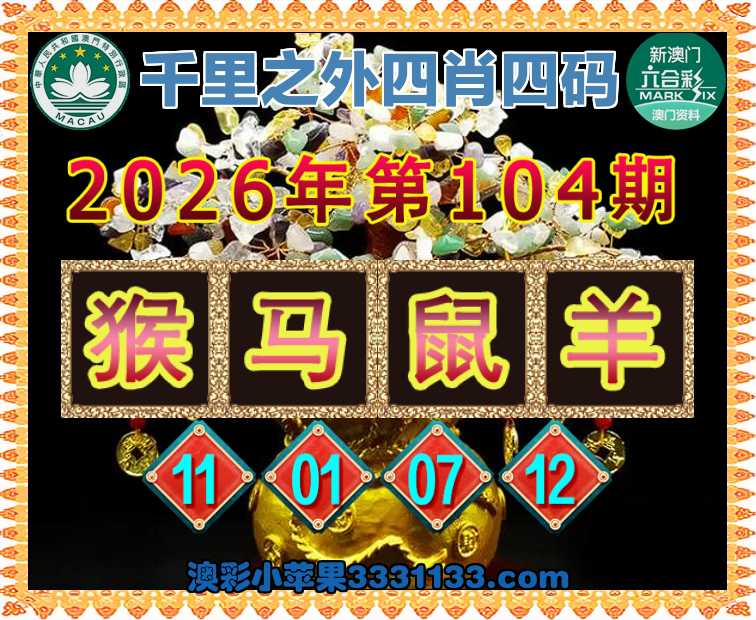 104期:《千里之外》 四肖四码【猴鼠羊】【11.01.07.12】开:马01准上榜高手