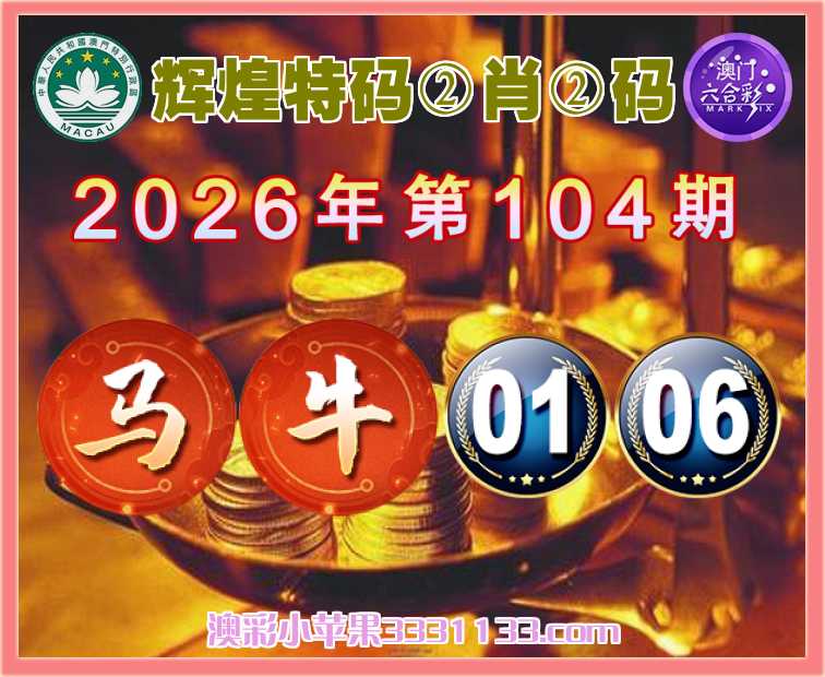 104期:【辉煌特码】 ②肖②码牛】【01.06】开:马01准上榜高手
