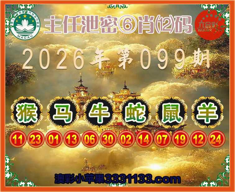 099期: 主任泄密 ⑥肖⑿码【猴马牛蛇鼠】开:羊12准上榜高手