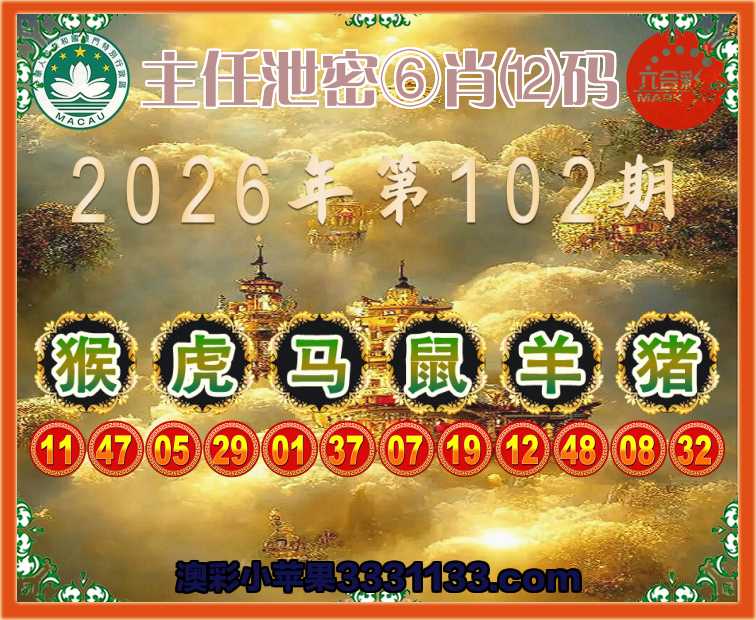 102期: 主任泄密 ⑥肖⑿码【猴虎马鼠羊】开:猪20准上榜高手