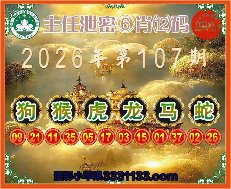 107期: 主任泄密 ⑥肖⑿码【狗猴虎龙马蛇】开:00准