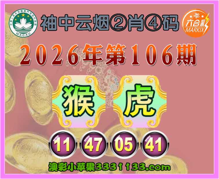 106期:【袖中云烟】 ②肖④码【猴虎】【11.47.05.41】开:鸡22