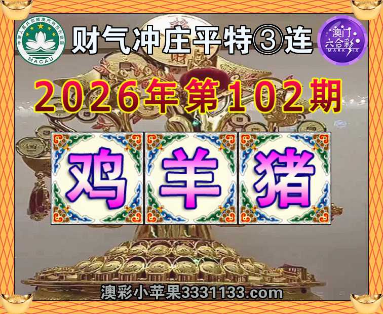102期:『财气冲庄』 平特③连【鸡羊猪】开:鸡46,羊36,猪20