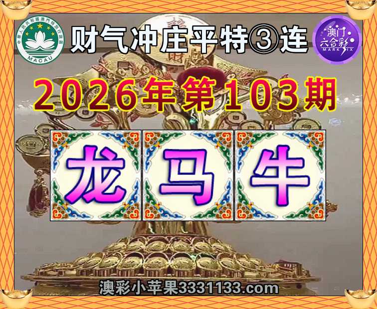 103期:『财气冲庄』 平特③连【龙马牛】开:龙03,马01,牛06