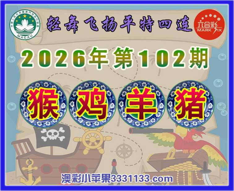 102期:『轻舞飞扬』 平特四连【猴鸡羊猪】开:猴47,鸡46,羊36,猪20