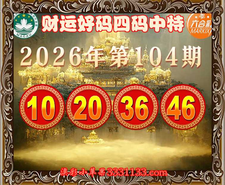 104期: 《财运好码》 四码中特【10.20.36.46】开:01
