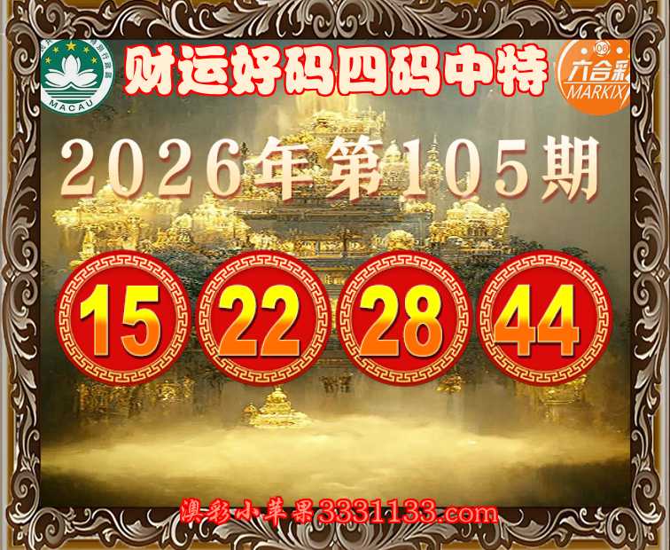 105期: 《财运好码》 四码中特【15.22.28.44】开:28准上榜高手