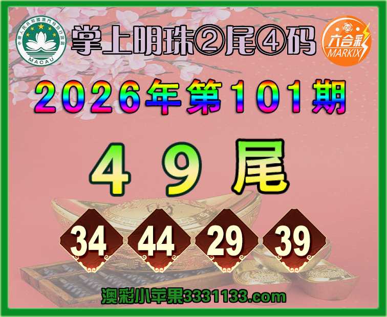 101期:【掌上明珠】 ②尾④码【49尾主:34.44.29.39】开:39