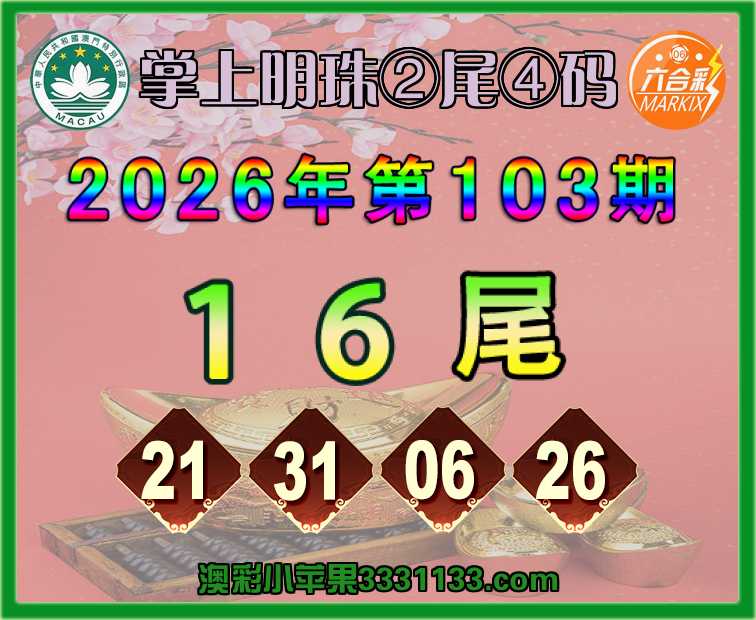 103期:【掌上明珠】 ②尾④码【16尾主:21.31.06.26】开:06